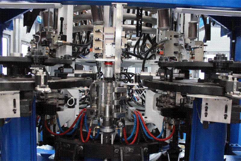 吹瓶部分實(shí)施了機(jī)械手雙層軌道曲線設(shè)計(jì)、吹瓶機(jī)模號(hào)加裝壓力檢測(cè)裝置、主吹輪氣源進(jìn)出采用旋轉(zhuǎn)式動(dòng)靜密封氣套(發(fā)明專利產(chǎn)品)、吹瓶機(jī)主吹輪采用旋轉(zhuǎn)式機(jī)械補(bǔ)償水套等多項(xiàng)技改措施,大大加強(qiáng)了吹瓶運(yùn)行的安全性、穩(wěn)定性,并延長(zhǎng)了關(guān)鍵部件的使用壽命。