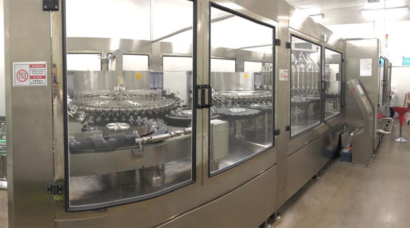 2017年,由廊坊百冠量身定制的20000B/H(330ml)玻璃瓶灌裝生產線落戶涼露酒業,開啟了玻璃瓶酒類灌裝的新篇章。其中白酒定量灌裝一體機為四合一機型,具備沖瓶、瀝干、灌裝、封口功能,為百冠公司高端產品之一。